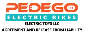In consideration for being permitted by Electric Toys LLC to rent and ride a Pedego electric bike, I hereby release Electric Toys LLC from all actions, claims or demands which I may now or hereafter have, and I agree that I, my assignees, heirs, personal representatives and other agents will not make a claim against, or sue, or attach the property of Electric Toys LLC on account of injury or other damage resulting during the ride or from the negligence or other acts (excluding gross negligence and intentional acts), however caused, of their employees, contractors, or other agents.