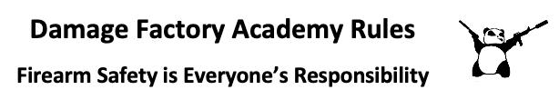 1. Always keep your firearm pointed in a safe direction and treat all firearms as if they are loaded. 2. Keep your finger off the trigger until you are ready to shoot. 3. Keep your firearm unloaded until you are ready to use it. 4. Be certain your firearm is in good working order. 5. Know how to safely use the firearm. 6. Use only the correct ammunition for your firearm. 7. Know your target, and what is beyond. 8. Wear eye and hearing protection before entering the range and at all times while on the range. 9. Never use alcohol or drugs before and/or during shooting. 10. All shooters must be over the age of 18 or be accompanied by a parent or a legal guardian; or provide a completed third party minor release waiver. 11. Do not leave firearms unattended in your vehicle. 12. NO ONE is allowed past the shooting stations or down range. 13. REPORT ANY/ALL NEGLIGENT DISCHARGES AT ONCE. 14. No Aluminum or Steel Case Ammunition is permitted at Damage Factory. 15. No pistol calibers larger than a .45, and no rifle calibers larger than 7.62 x 51 (16in barrel) 16. Shotguns are allowed (12GA, 20GA, 410GA) with buckshot and slugs only. 17. All ammunition must be SAAMI or CIP approved Full Metal Jacket, hollow point or frangible. No tracers, steel core, home reloads or incendiary rounds are permitted as they are a FIRE HAZARD. Violators may be asked to leave the range without a refund. 18. All down range and abandoned brass casings belong Damage Factory. 19. Pregnant women and/or people with O2 tanks are NOT allowed in the shooting range area. 20. Drawing from the holster is NOT permitted, unless you have successfully qualified Damage Factory’s Drawing from the Holster Qualification. 21. No hand-to-hand transfer of firearms. No lane-to-lane transfers of firearms without a casing the firearm. 22. All NFA (machine-guns, silencers, SBRs) items must be accompanied by the appropriate paperwork. Damage Factory reserves the right to check all paperwork and items prior to shooting activities. 23. NO REFUNDS of any kind for parties expelled from the range for safety violation. DAMAGE FACTORY RANGE