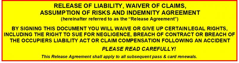 In consideration of the Releasees accepting my application for a Season Pass and permitting my use of the lifts, ski runs, trails, terrain parks, race courses, restaurants, day lodge, parking, access roads and other ski area facilities (hereinafter “the premises”), I hereby agree as follows: 1. TO WAIVE ANY AND ALL CLAIMS that I have or may in the future have against THE RELEASEES, and TO RELEASE THE RELEASEES from any and all liability for any loss, damage, expense or injury including death that I may suffer, or that my next of kin may suffer, as a result of my use of or my presence on the premises or travel beyond the ski area boundary DUE TO ANY CAUSE WHATSOEVER, INCLUDING NEGLIGENCE, BREACH OF CONTRACT, OR BREACH OF ANY STATUTORY OR OTHER DUTY OF CARE, INCLUDING ANY DUTY OF CARE OWED UNDER THE OCCUPIERS LIABILITY ACT, R.S.B.C. 1996, c. 337 ON THE PART OF THE RELEASEES. I UNDERSTAND THAT NEGLIGENCE INCLUDES THE FAILURE ON PART OF THE RELEASEES TO TAKE REASONABLE STEPS TO SAFEGUARD OR PROTECT ME FROM OR WARN ME OF THE RISKS, DANGERS AND HAZARDS REFERRED TO ABOVE. December 18, 2025 2. TO HOLD HARMLESS AND INDEMNIFY THE RELEASEES for any and all liability for any damage to property of or personal injury to any third party, resulting from my use of or presence on the premises or travel beyond the ski area boundary; 3. This Release Agreement shall be effective and binding upon my heirs, next of kin, executors, administrators, assigns and representatives, in the event of my death or incapacity; 4. This Release Agreement and any rights, duties and obligations as between the parties to this Release Agreement shall be governed by and interpreted solely in accordance with the laws of the British Columbia and no other jurisdiction; and 5. Any litigation involving the parties to this Release Agreement shall be brought solely within British Columbia, and shall be within the exclusive jurisdiction of the Courts of British Columbia. In entering into this Release Agreement I am not relying upon any oral or written representations or statements made by the Releasees with respect to the safety of skiing or snowboarding other than what is set forth in this Agreement. December 18, 2025 The Season Pass issued to the Passholder is the property of My Recreational Mountain Cooperative, is not transferable, not for resale and is revocable for misconduct or breach of the Alpine Responsibility Code. December 18, 2025 I HAVE READ AND UNDERSTAND THIS RELEASE AGREEMENT AND I AM AWARE THAT BY SIGNING THIS AGREEMENT I AM WAIVING CERTAIN LEGAL RIGHTS WHICH I OR MY HEIRS, NEXT OF KIN, EXECUTORS, ADMINISTRATORS, ASSIGNS AND REPRESENTATIVES MAY HAVE AGAINST THE RELEASEES. 5485803/RBK/FARRIS/0820 December 18, 2025