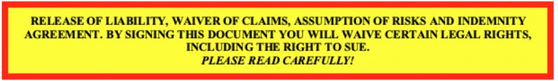 (f) Passengers: have an increased risk of bodily harm and or death. (g) Hiking/ Walking: Can be very dangerous and painful if you fall, over exertion can cause heart attacks and other medical complications. Cliffs and fast water/waterfalls/icefalls are found throughout the operating areas. I acknowledge and accept that the Operators and their staff may fail to predict whether the terrain over which I will travel is safe for the Activities and the Services or may fail to predict or identify the presence of any of the natural or man-made hazards, including but not limited to those identified above. I am now aware of the risks, dangers and hazards associated with the Activities and I freely accept and fully assume all such risks, dangers and hazards, and the possibility of personal injury, death, property damage or loss resulting therefrom. RELEASE OF LIABILITY, WAIVER OF CLAIMS AND INDEMNITY AGREEMENT In consideration of the Operators providing the Services, I hereby agree as follows: